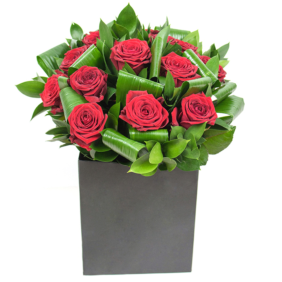 Our elegant red rose ensemble combines timeless beauty with modern design, creating a unique and sophisticated display for any occasion.